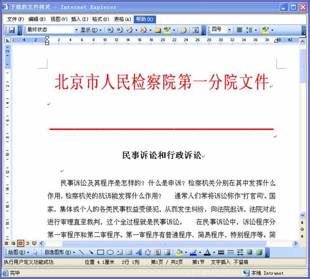 文档套红:公文经领导签发后,发文人员需要整理审批后的文件,包括格式的编排和文件套红,手工的处理将增加很多环节。采用一体化的自动套红功能,发文人员只需要选择相应的“套红”模版,系统将自动添加“套红”标题,快速的完成工作。