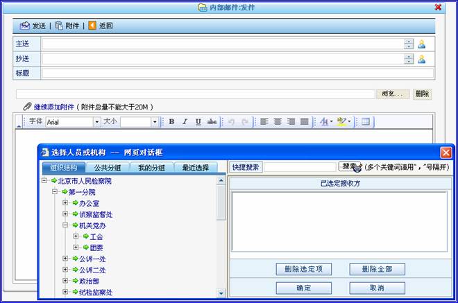 短消息管理提供系统用户进行内部短消息的收发的功能,包含发送短消息、已发短消息、接收短消息、短消息归档等功能。