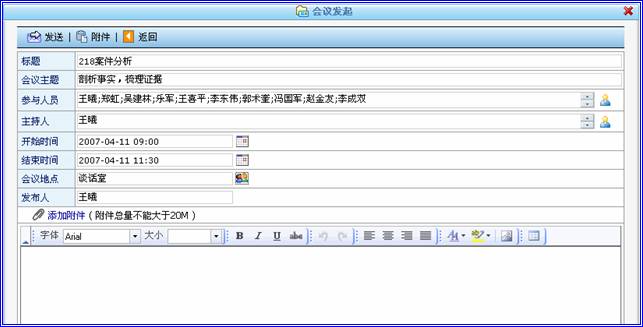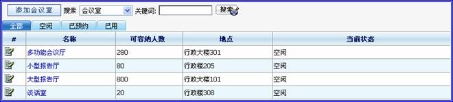 会议管理包括会议申请和查看会议安排两个功能模块,用于申请会议和召开网络会议,并可按照待批会议、已准会议、进行中会议和未准会议分类列表,方便用户查询和管理自己的会议,同时被批准的申请具有短信提醒功能。