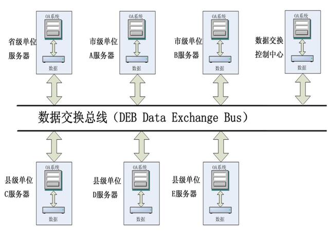 健达政务协同平台,通过数据交换总线(DEB Data Exchange Bus)实现数据的传递与交互,从而有效解决上下级单位分级管理的问题。